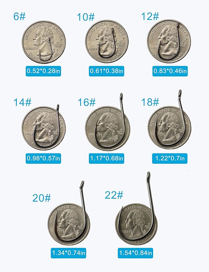 Cost-Effective Great Value: With 8 varying sizes (6#–22#) in one set, it covers diverse fishing needs for medium-to-large fish. It’s also ideal for family fishing trips (perfect for fishing with kids), eliminating the need to buy single-size hooks separately. A valuable, budget-friendly addition to any angler’s tackle bag.